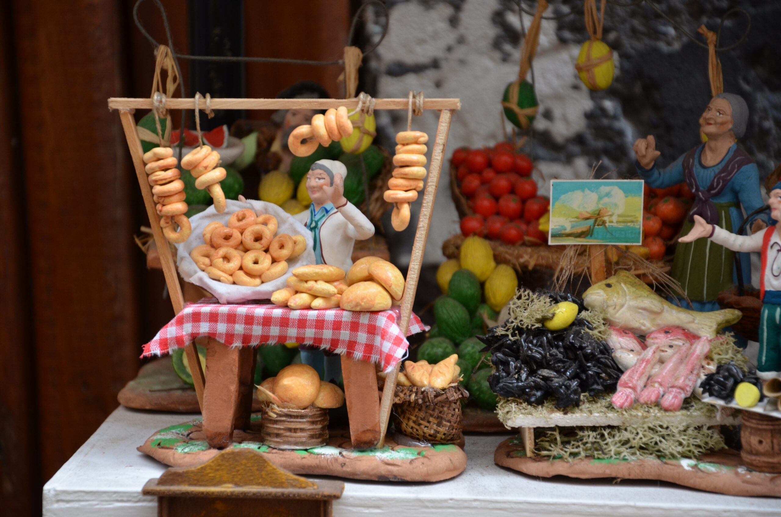 Nel foto reportage di Giuseppe Nuzzo la bellezza di alcune scene di cibo in presepi contemporanei di San Gregorio Armeno.