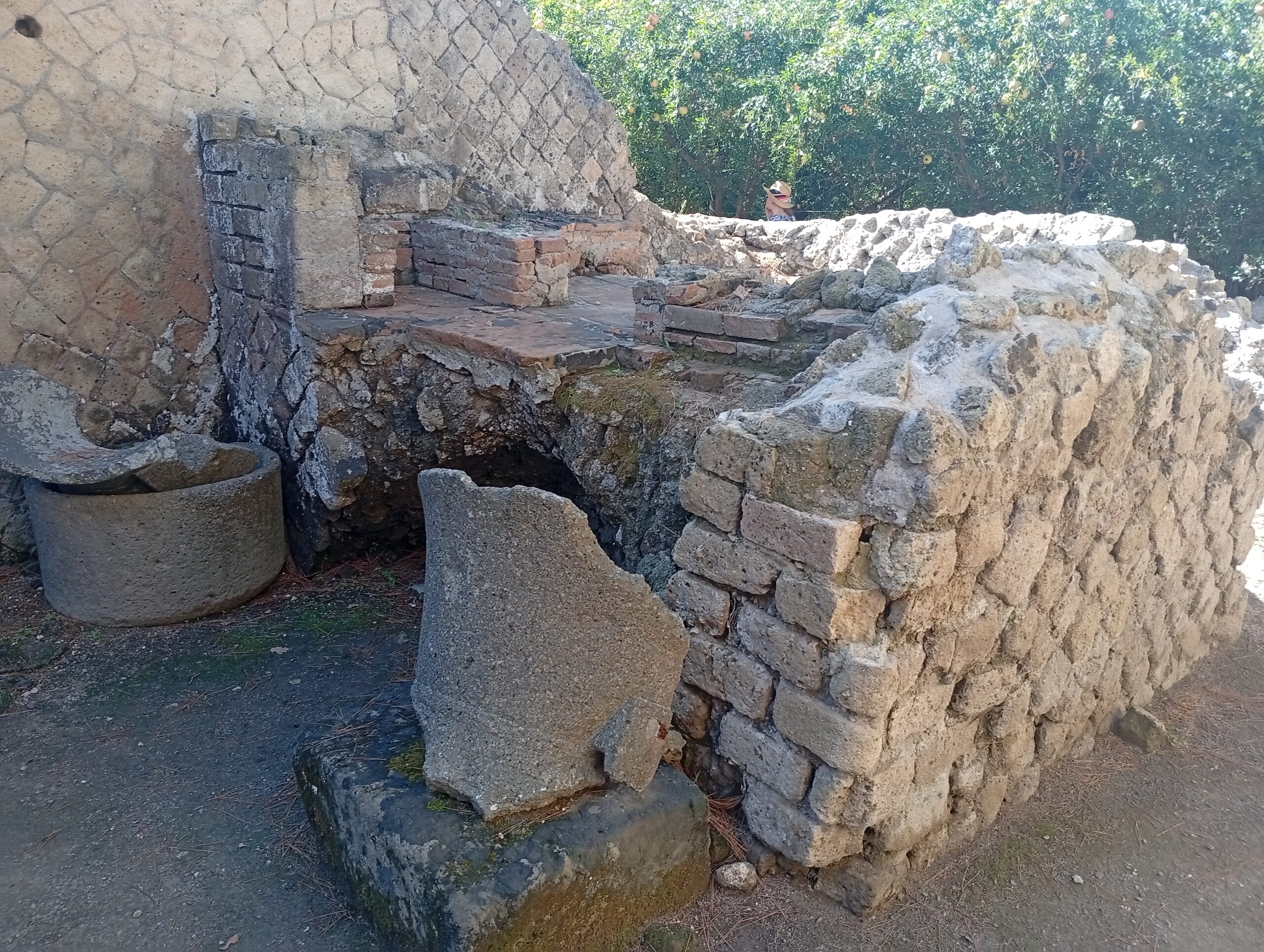 L’antica panetteria di Ercolano ‘Pistrinum‘ si scorge lungo le stradine del Parco archeologico di Ercolano. Il bancone di vendita non è l’unica testimonianza dell’importanza di questo negozio per gli abitanti. Ci sono i resti anche di “mole asinarie, così chiamate perché azionate dal duro lavoro di animali da soma. Uno di questi, un asinello, è stato rinvenuto accanto a una delle due macine del pistrinum del vicolo meridionale (Insula Orientalis II), una scoperta emozionante che dobbiamo all’archeologo Amedeo Maiuri, protagonista degli scavi della città tra il 1927 e il 1961” come spiegano le fonti.