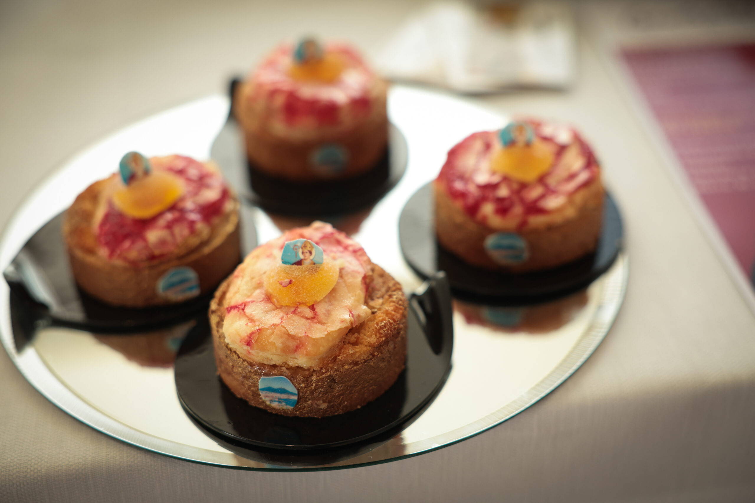 Ai partecipanti è stato richiesto di realizzare una monoporzione inedita, utilizzando una delle farine Mulino Caputo e un ingrediente di colore rosso (simbolo del miracolo del sangue di San Gennaro) e/o di colore giallo (in riferimento all’epiteto popolare “Faccia ‘ngialluta”), scelto tra quelli prodotti dall’azienda Santorè, specializzata nella lavorazione della frutta.